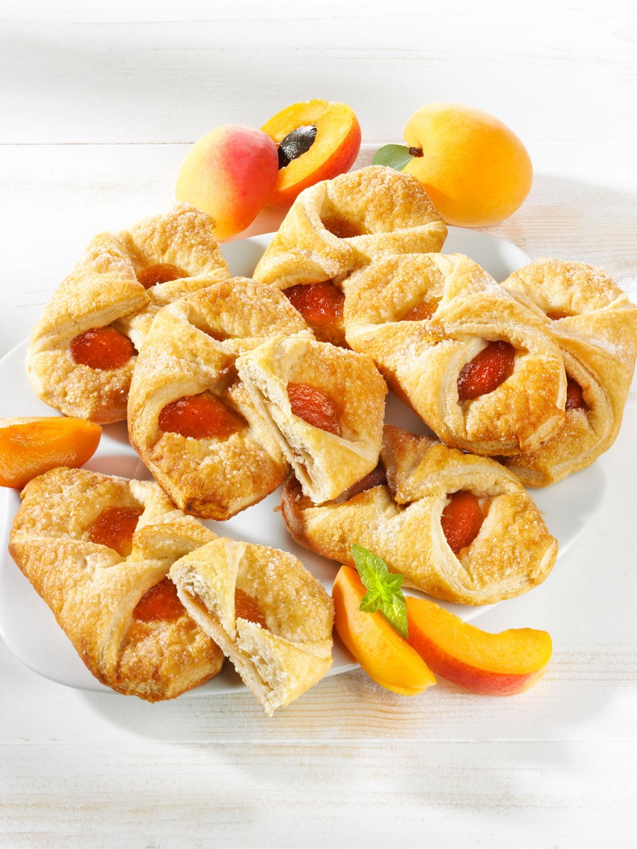 Mmmh, wie köstlich Blätterteig mit einer Aprikosenfüllung von 20%. Die knusprigen Blätterteige der Pâtisserie Mathéo mit Aprikosenfüllung überzeugen durch den fruchtigen Geschmack. Perfekt als Dessert, zwischendurch oder mit einem heißen Getränk. Mit diesem fruchtigen Genuss ist immer Aprikosensaison. 2 x 4 Stück. 300 g.
