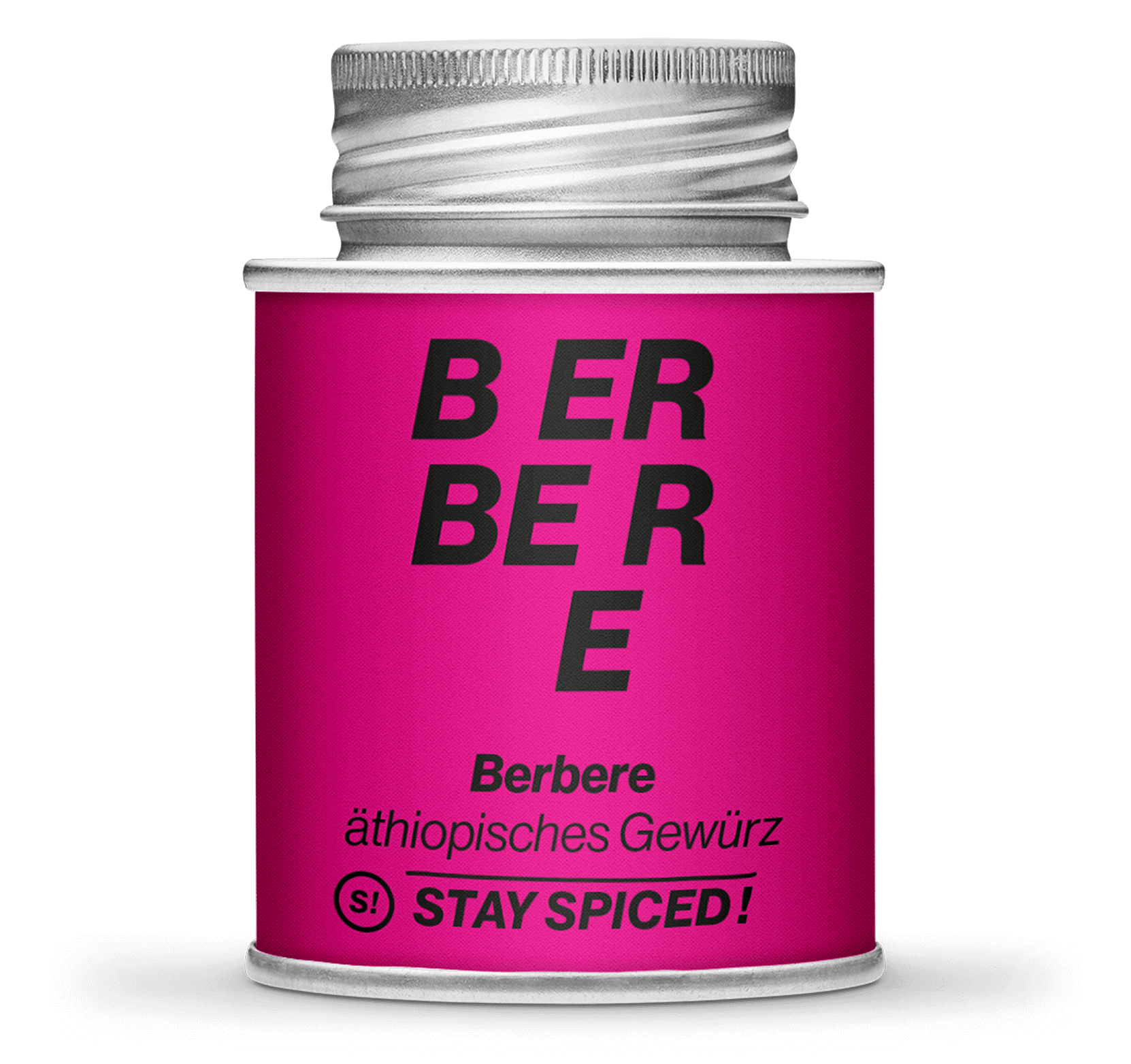 Berbere ist eine relativ scharfe und fruchtige Gewürzmischung aus Äthiopien. Wunderbar zum Würzen von Pasteten und Terrinen sowie Stopfleberzubereitungen. Eintöpfe, Reisgerichte, Gemüse und Geflügel bekommen durch Berbere eine interessante und exotische Note.