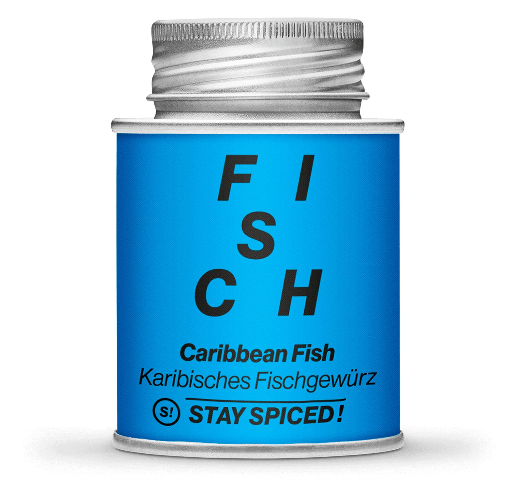 S! Caribbean Fish: Selbst Captain Sparrow würde keinen Fisch mehr ohne dieses Gewürz essen! In der karibischen Küche spiegelt sich die bewegte regionale Geschichte der letzten 500 Jahre wider. Vielfältige Einflüsse aus Afrika, Indien und Europa prägten die schlichten aber außerordentlich köstlichen Gerichte. Und genau diese kulinarische Strömung ist heute selbst aus der gehobenen internationalen Küche nicht mehr wegzudenken. Natürlich spielen Fisch und Schalentiere eine wichtige Rolle in der caribbean Cuisine. Sie werden vor allem mit Chilis und saisonalen Gemüse- und Obstsorten zubereitet. Die Grundlage der karibischen Köstlichkeiten bilden meist Hülsenfrüchte, Reis, Süßkartoffeln oder Kochbananen. Und das passende Gewürz für karibischen Genuss in deiner (Outdoor-)Küche gibt’s natürlich bei STAY SPICED !: Das Caribbean Fish Gewürz. Das karibische Fischgewürz von S! zeichnet sich durch seinen typisch würzig-karibischen Geschmack aus, der sich aus der köstlichen Mischung aus edlen Reinzutaten wie Knoblauch, Cayenne Chili, Cumin, Paprika, Pfeffer und natürlich unbehandeltem Meersalz zusammensetzt. Diese Gewürzmischung wie aus der Karibik ist ein Highlight für Fisch, Muscheln und Krustentiere: Garnelen, Scampi, Hummer, Langusten. Hervorragend schmeckt es außerdem zu Geflügel, Kalb und Schwein sowie Gemüse- und Reisgerichte.