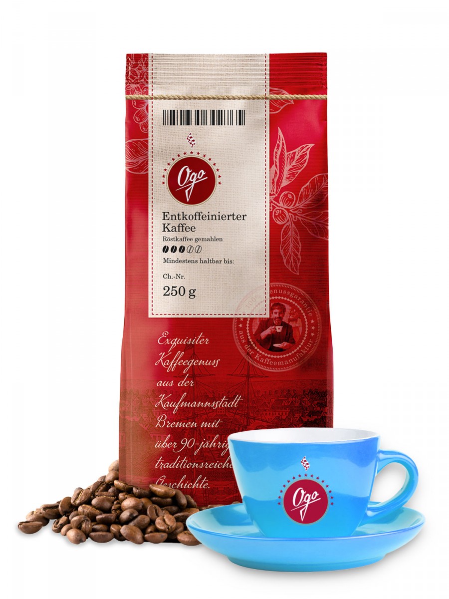 Unser mild-aromatischer und schonend entkoffeinierter Arabica-Kaffee. Genießen Sie jederzeit den unnachahmlichen Geschmack unseres Ogo-Kaffees. 250 g ganze Bohne in Aromapack.