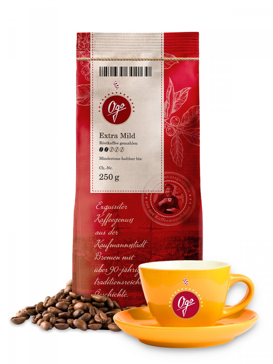 Die schonend gedämpften Arabica-Bohnen dieses Kaffees sorgen für einen extra milden und aromatischen Kaffeegenuss mit weniger Bitterstoffen. 250 g ganze Bohne in Aromapack.