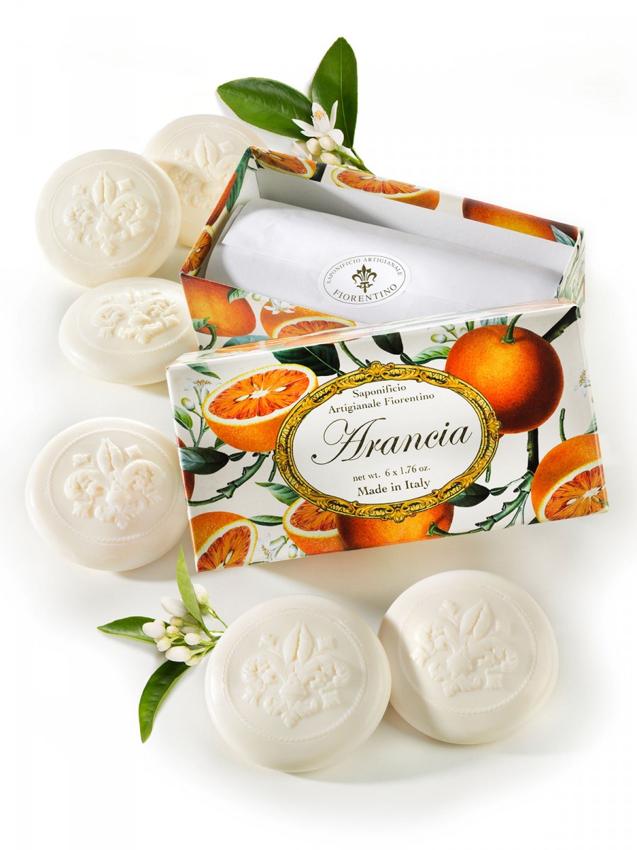 Was für ein großartiger Duft Saponificio Artigianale Fiorentino-Seifen sind handgemacht und werden nach traditionellem Handwerk in der Toskana mit typischer Prägung gefertigt. Sie entwickeln einen cremigen und pflegenden Schaum und duften herrlich nach frischen Orangen. 6 x 50 g. Geschenkverpackung: ca. 15 x 7 cm.
