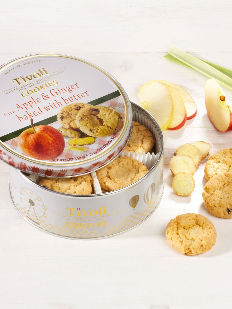 Wie frisch aus der Backstube In der hübschen Metallrunddose kommt das Gebäck mit Apfel, Ingwer und Butter gebacken, köstlich und knusprig auf Ihren Tisch. Der unverkennbare Geschmack und Duft dieses traditionellen Gebäckes passt hervorragend zu jedem Genussmoment bei Kaffee oder Tee. Höhe: ca. 5 cm, Ø 13 cm. Inhalt: 150 g.