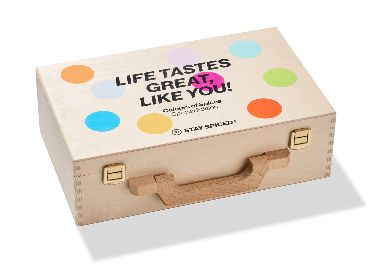 Das Jahr wird würzig – und du kannst es in all seinen abwechslungsreichen Facetten genießen! Dafür brauchst du nur die Colors of Spices Gewürzbox, die mit 15 außergewöhnlichen STAY SPICED ! Gewürzmischungen bestückt ist und deinen Gerichten den perfekten Geschmacksschliff verleiht. Ein geniales Geschenk für Genießer, Foodies, Freunde, Familie – und dich selbst!