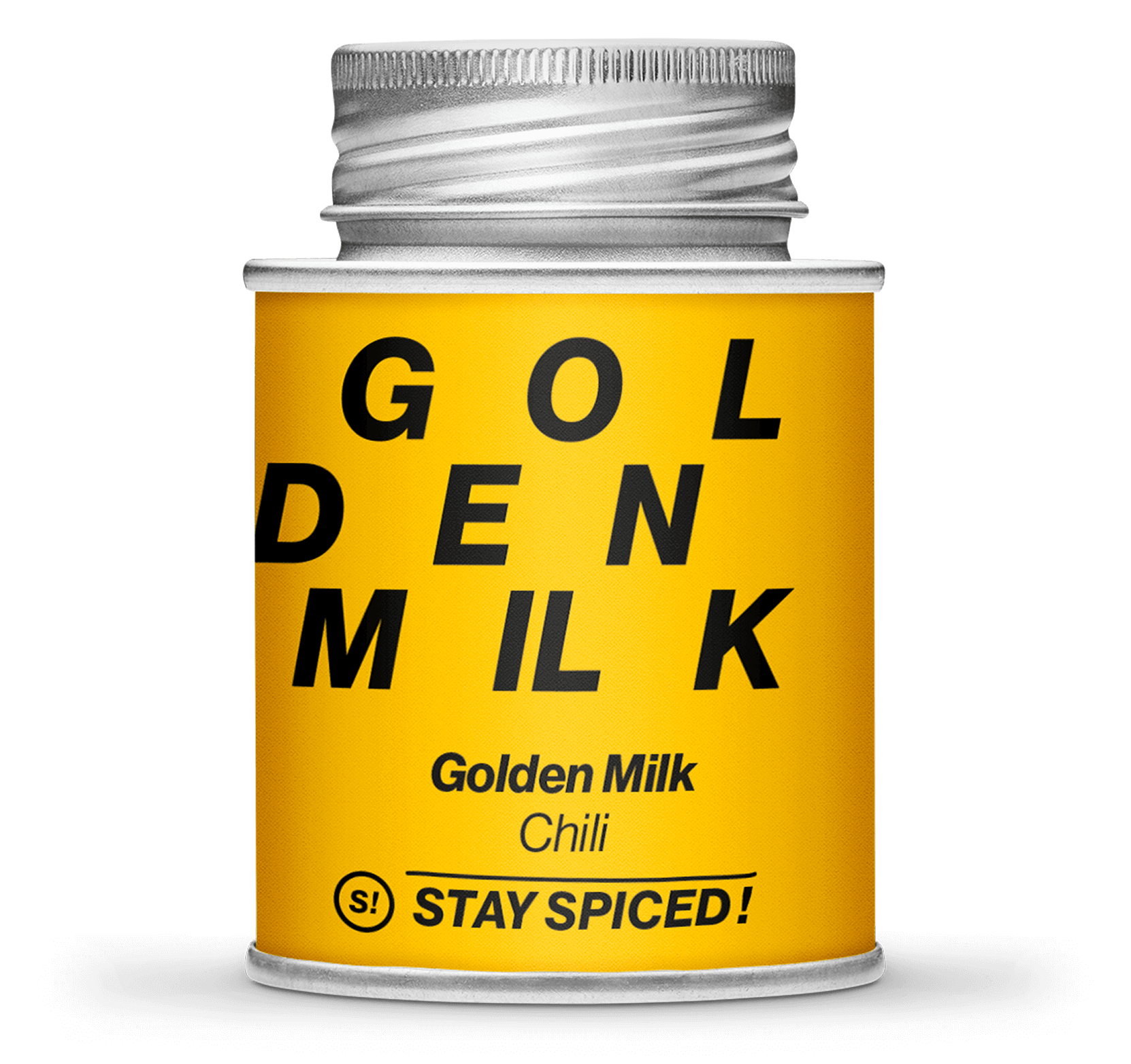 Chili-Fans aufgepasst: Mit der Golden Milk Chili von SPICEWORLD wird euch nicht nur warm ums Herz, sondern auch um den Gaumen. Mit dem feurig-scharfen Mix aus Curcuma, Jalapeño Chili und Habenero Chili hat die Golden Milk Chili großes Potenzial zu deinem neuen Lieblingsgetränk zu werden. Dieses Geschmackserlebnis wirst du nicht mehr missen wollen! SPICEWORLD Tipp: Je 200 ml Milch 1 TL Golden Milk einstreuen und verrühren. Zum Süßen der Golden Milk eignen sich neben Honig auch Kokosblüten-Zucker und Muscovado Zucker sehr gut. Mandelmilch, Kokosmilch und Reismilch sind eine optimale Alternative zu herkömmlicher Milch.