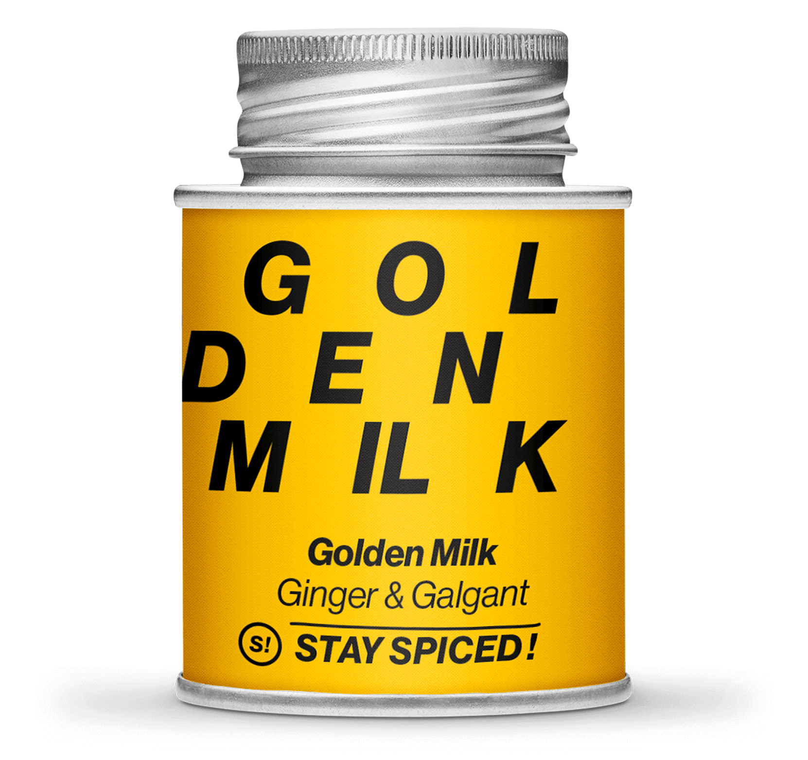 Hol Dir das indische Nationalgetränk Golden Latte in Deine Tasse! Die super-spicy, zuckerfreie Gewürzzubereitung Golden Milk Ginger & Galgant mit den positiven Eigenschaften der Curcuma-, Ingwer- und Galgantwurzel macht Milch zu einem wahren Power-Getränk und wärmt auf ganz natürliche Weise von innen. Ein Muss für Fans der außergewöhnlichen Wurzeln! Golden Milk Ginger & Galgant ist jedoch nicht nur für den Trinkgenuss geeignet, sondern harmoniert auch in Kuchen, Muffins, Keksen und Desserts.