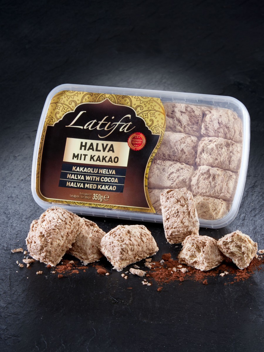 Ein Hochgenuss für Freunde der orientalischen Leckerei aus Sesammus mit edlem Kakao verfeinert. Genießen Sie diese köstlichen Bissen als Dessert oder zu einem Mokka oder Tee. 350 g.