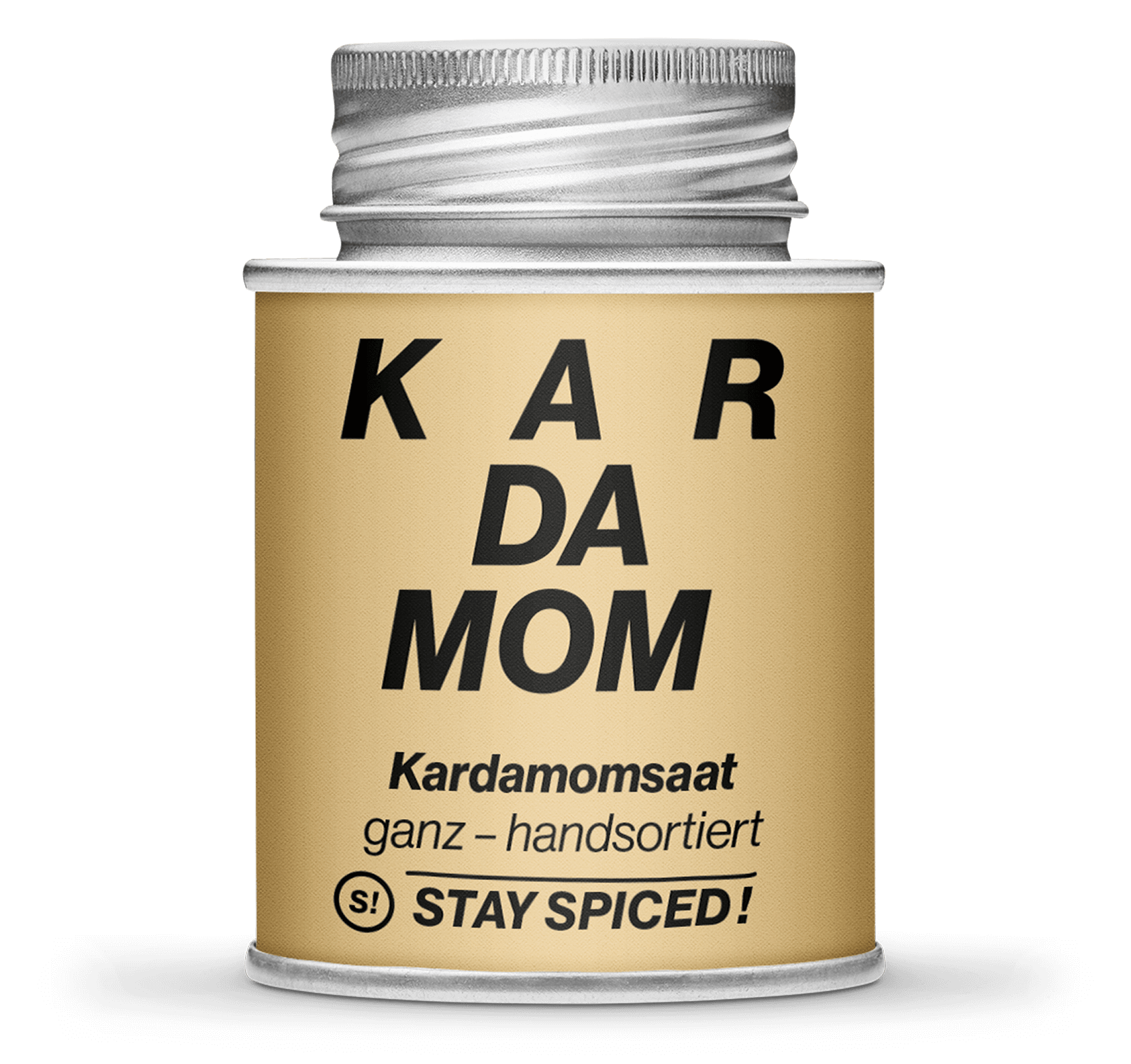 Herkunft Ursprünglich stammt Kardamom aus Indien und Sri Lanka, heute wird er in vielen Tropenländern angebaut. Allgemeines Die Samen enthalten ein ätherisches Öl, das ihnen ein würziges, süßlich-scharfes Aroma verleiht. Da es leicht verfliegt, sollte man ganze Kapseln dem zimtähnlich aussehenden Kardamom – Pulver vorziehen, in dem auch meist die geschmacklosen Fruchtschalen mit vermahlen sind, und die Samen erst bei Bedarf mörsern oder mahlen. Verwendung Kardamom – Samen sind ein verbreitetes Gewürz in der asiatischen Küche und gehören zu den Hauptbestandteilen indischer Masalas und des ihnen nachempfundenen Currypulvers. Abgesehen vom Currypulver findet Kardamom in der europäischen Küche Verwendung bei Weihnachtsgebäck wie Lebkuchen und Spekulatius, aber auch für Wurstwaren, Liköre und als Bestandteil von Gewürzmischungen. Bei der Zubereitung von arabischem Mokka wird dem Kaffeemehl häufig Kardamom zugegeben. Anwendung findet das Gewürz auch bei der Zubereitung von Milchtee. Spiceworld-Tipp Mit der Kardamomsaat ersparen sie sich die Arbeit, die Hülse zu entfernen.