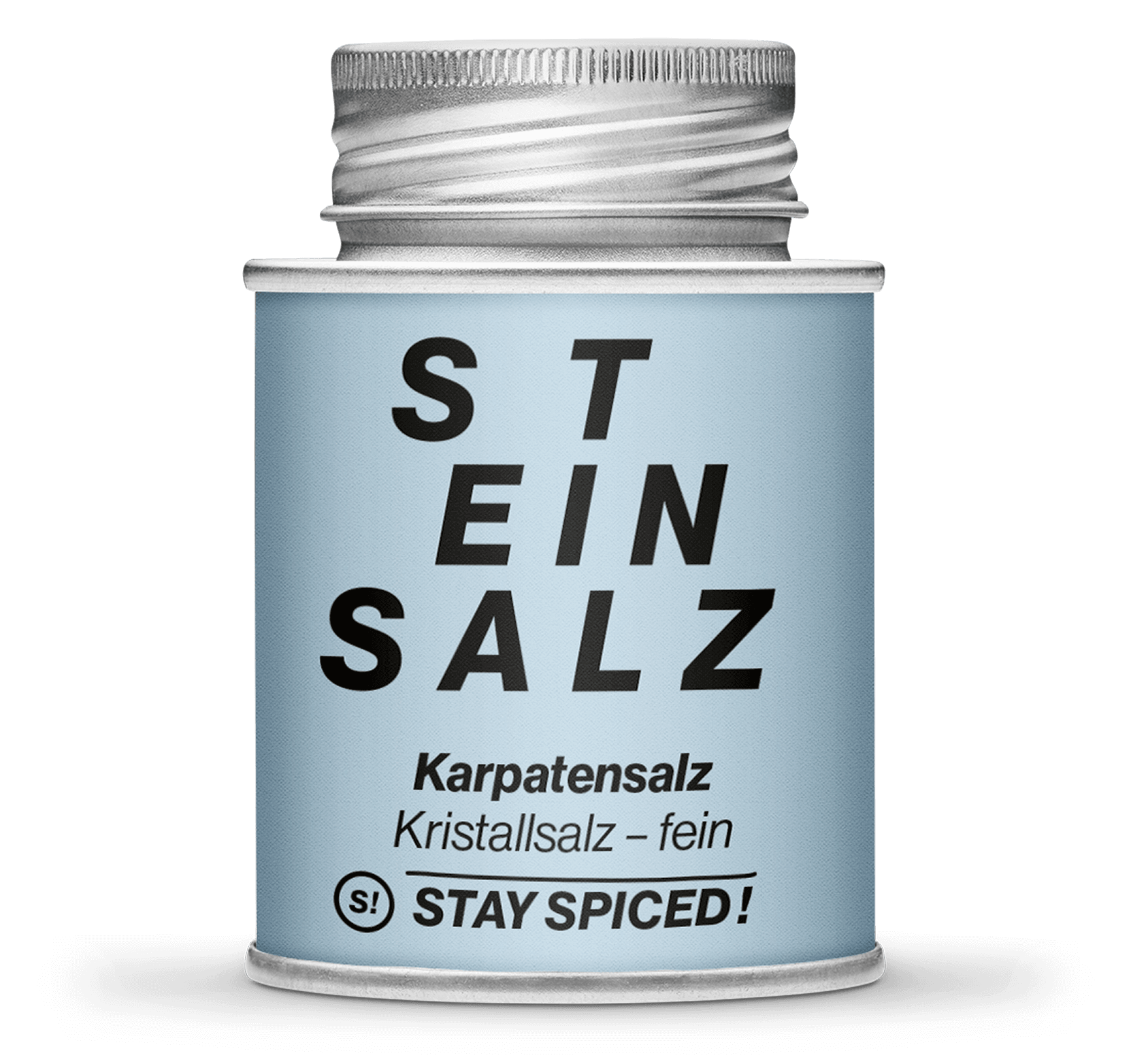 Außergewöhnlich tiefgründig, harmonisch, mild und gehaltvoll, aus den Tiefen der Karpaten! Sehr reich an Mineralien und Spurenelementen, besonders an Kalzium. Und vollkommen naturbelassen, ohne jegliche Zusatzstoffe. Dafür steht STAY SPICED’s ! Karpatensalz, das „Weiße Gold“! Es ist es sehr vielseitig einsetzbar. Die milde Note bringt den Eigengeschmack der Gerichte wunderbar zur Entfaltung.
