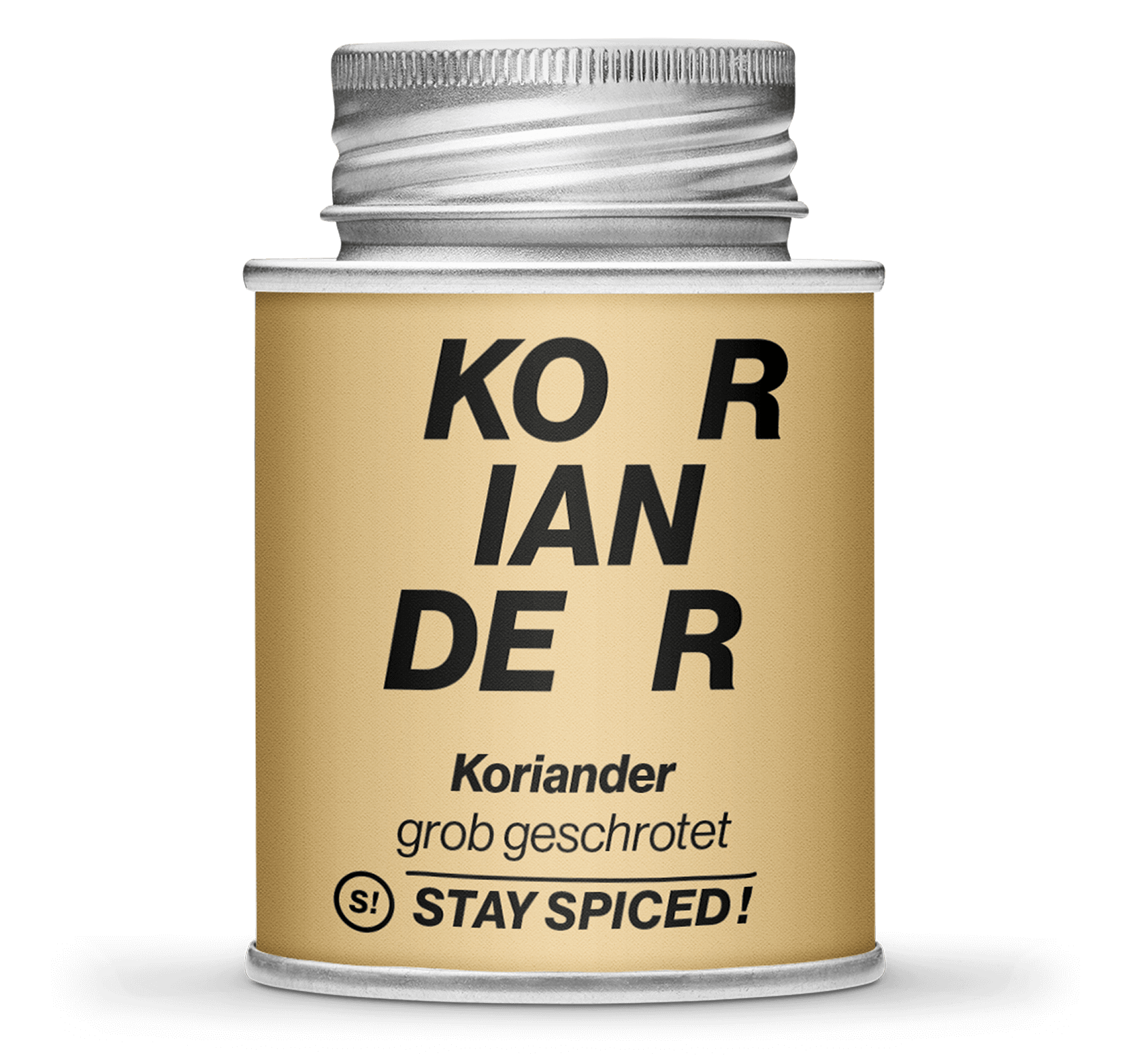 Herkunft Die Heimat des Korianders ist das östliche Mittelmeergebiet. Mittlerweile wird das Gewürz weltweit angebaut. Allgemeines Koriander ist ein Doldengewächs. Die Pflanze ist einjährig und wird bis zu 60 cm hoch. Die Früchte sind die getrockneten, gelblichbraunen Korianderkügelchen. Koriander mit seinem süßlichen, anisähnlichen Geschmack gibt es in ganzen frischen oder getrockneten Blättern, frischen Wurzeln und ganzen oder gemahlenen Samen. Verwendung Gemahlener Koriander würzt Weihnachtsgebäck wie Lebkuchen, Pfefferkuchen, Spekulatius, Honigkuchen und Printen, ebenso wie selbstgebackenes Brot und Brötchen. Er eignet sich auch für Pasteten. Koriander findet man auch in vielen Curry-Mischungen. Spiceworld-Tipp Koriander hat einen Hohen Magnesium-Gehalt.