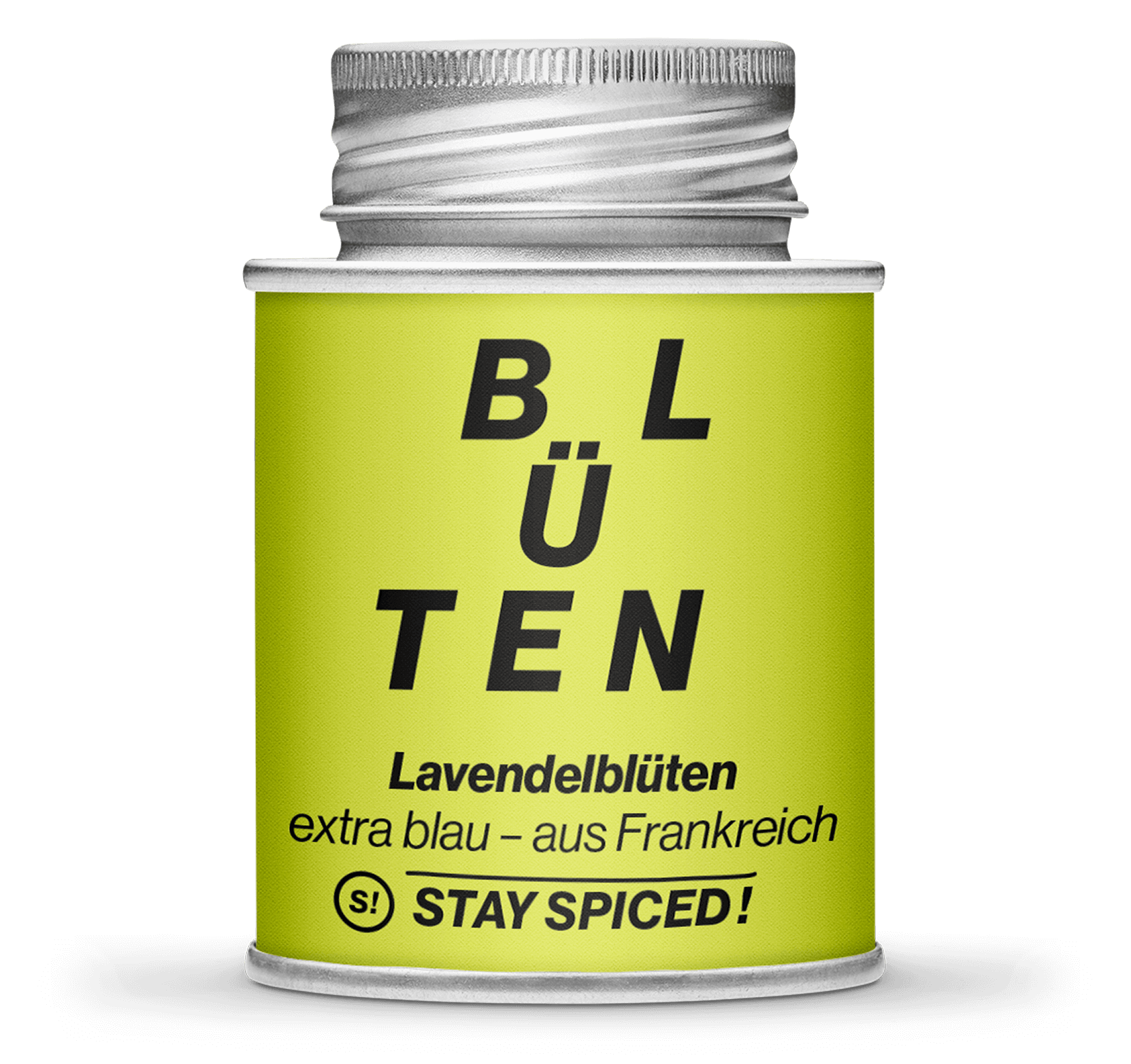 Herkunft Lavendel ist im Mittelmeergebiet heimisch und wird bei uns gern in Gärten gezogen. Allgemeines Getrocknet verlieren die Lavendelblüten zwar leicht ihre blaue Farbe, behalten aber ihren stark aromatischen Geruch. Verwendung Lavendel ist typisch für die südfranzösische Küche und vorwiegend nur für robuste Gerichte verwendbar. Der etwas aufdringliche Geruch und Geschmack dominiert; daher sollte man in der Verwendung aufpassen. Zusammen mit Knoblauch passt das Gewürz auch ideal zu Käse; besonders zu Schimmelkäse. Spiceworld-Tipp Lavendelblüten-Salz passt hervorragend zu Lamm-Gerichten.
