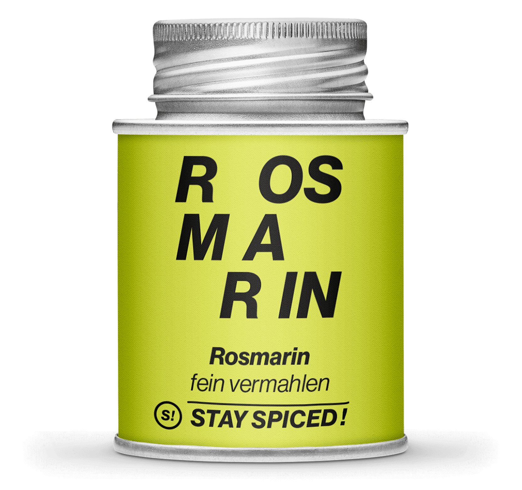 Herstellung und Verarbeitung Rosmarin wird vor allem in den Mittelmeergebieten angebaut. Er gehört zu den beliebten „Herbes de Provence“ – gemeinsam mit Bohnenkraut, Oregano, Thymian, Fenchel und Lavendel. Die Haupternte geschieht in der Blütenzeit an warmen Tagen. Geschmack und Beschaffenheit Dieser erlesene Rosmarin riecht sehr intensiv und besticht durch einen minzigen Unterton mit holziger Nuance. Er schmeckt leicht harzig und anregend herb, mit Anklängen an Eukalyptus und Kampfer. Das ätherische Rosmarinöl dient übrigens auch zu Aromatherapien und als Duftzusatz für Massageprodukte, Bäder und Pflegemittel für den Körper. Verwendung und Anwendung Dieser mediterrane Klassiker von SPICEWORLD gehört – dank seiner vielseitigen Verwendung – in jede Küche! Er veredelt Ihr Gebratenes und Gegrilltes: Lamm, Schwein, Rind, Kalb, Kaninchen. Oder ein ganzes Huhn im Ofen und köstliche Putenspieße! Hervorragend schmeckt er auch in Wild- und Geflügelragouts, Ratatouille, Marinaden und Salatdressings, zu Bratkartoffeln, Pilzgerichten und Ofengemüse – zum Beispiel Zucchini, Auberginen, Fenchel. Und was wäre die Pizza ohne Rosmarin? Dieser Rosmarin harmoniert perfekt mit Tomaten – egal ob in der Suppe oder in der Tomatensuppe. Fisch erhält durch dieses edle Kraut eine anregend würzige Note. Auch ein einfaches Steak lässt sich mit Rosmarin, zusammen mit ein paar Knoblauchscheiben, wunderbar bereichern. Selbst Meeresfrüchte gewinnen mit Rosmarin an Geschmack. Einzigartig sogar in Desserts – zum Beispiel in der Schoko-Rosmarin-Sauce mit Vanilleeis, in Konfitüren und Plätzchen. Vorzüglich eignet sich dieser Rosmarin auch zum Aromatisieren von Ölen, gemeinsam mit Knoblauch und Chili. SPICEWORLD Tipp: Würzen Sie Ihre warmen Gerichte mit diesem fein gemahlenen Rosmarin erst gegen Ende der Zubereitung. Zutaten und Produktkennzeichnungen Reingewürz, Inhalt: Rosmarin, fein gemahlen.