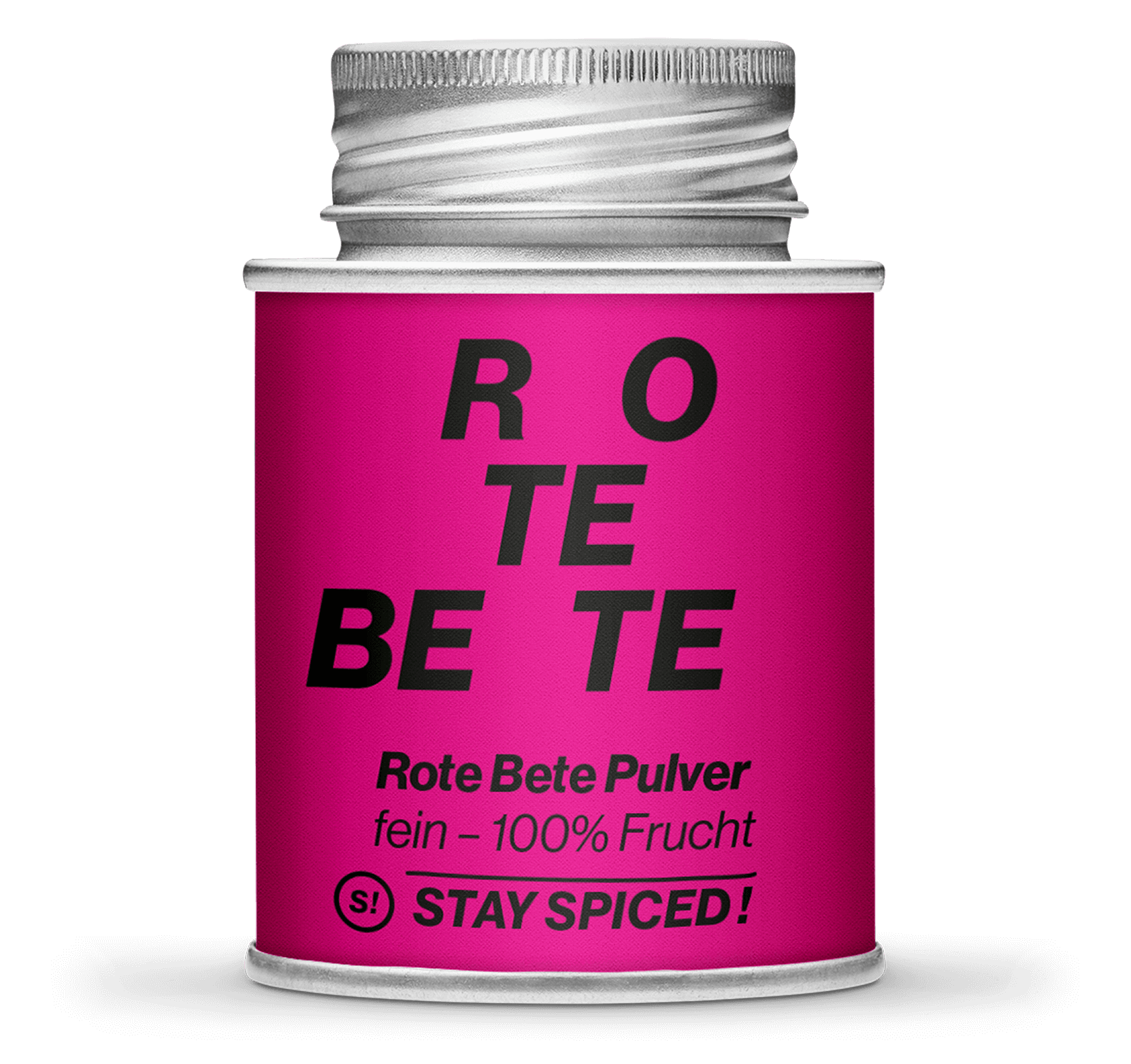 100% getrocknete rote Rüben in einer Dose versteckt. Gibt einer Vielzahl an Speisen eine besondere Farbnote und sorgt dazu für einen tollen Geschmack!