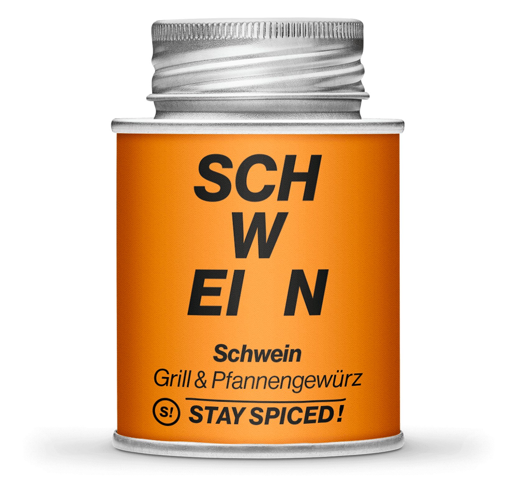 Herstellung und Verarbeitung Mehr als 20 Gewürze prägen den reichhaltigen Geschmack dieser Gewürzmischung. Die Pfefferkörner werden sanft geschrotet, danach werden unbehandeltes Meersalz, Steinsalz und geräuchertes Salz sowie mehr als 20 Gewürze untergemischt, von Paprika über Kümmel, Zwiebel und Chili bis hin zu geräuchertem Paprika, Knoblauch, Cumin, Tomaten und Rosmarin. Geschmack und Beschaffenheit Lassen Sie sich von der Harmonie dieser Gewürzmischung verführen. Der Geschmack ist klassisch, reichhaltig, sehr würzig, mit leichter Schärfe. Der sehr dezent rauchige Geschmack kommt von geringen Mengen geräuchertem Salz und geräuchertem Paprika. Für diese Komposition wird hochwertiges Pimenton de la Vera aus Südspanien verwendet. Die Basiszutaten Pfeffer und drei Arten von Salz werden mit dem Geschmack von Paprika, Senfkörnern, Koriander, Kümmel, Zwiebel, Knoblauch, Cumin, Tomaten, Chili und geräuchertem Paprika bereichert. Oregano, Kurkuma, Thymian, Majoran, Bockshornklee, Muskatnuss, Sellerie, Piment, Basilikum, Rosmarin, Estragon, Orangenschale, Ingwer, Zimt und ein wenig Demerara Rohrohrzucker geben der Komposition eine zusätzliche besondere Note. Verwendung und Anwendung Von Kotelett, über Schopf bis zum Bauch verfeinern Sie mit dieser klassischen Gewürzmischung auch alle Arten von hellem Fleisch, egal ob am Grill, am Smoker, in der Pfanne oder im Rohr. Die sehr harmonisch abgeschmeckte Mischung mit leichter Schärfe verzaubert jedes Fleischstück zu einem besonderen Genusserlebnis. Ideal geeignet zum Marinieren oder direkten Würzen. Zutaten und Produktkennzeichnungen Gewürzzubereitung, Zutaten: Gewürze (Paprika, Pfeffer, Senfkörner, Koriander, Kümmel, Zwiebel, Chili, geräucherter Paprika (Paprika, Rauch), Knoblauch, Cumin, Tomaten, Oregano, Kurkuma, Thymian, Majoran, Bockshornklee, Muskatnuss, Sellerie, Piment, Basilikum, Rosmarin, Estragon, Orangenschale, Ingwer, Zimt), unbehandeltes Meersalz, Steinsalz, geräuchertes Salz, Demerara Rohrohrzucker. BBQ for Champions Schwein ist frei von Farbstoffen, künstlichen Aromen und Zusatzstoffen.