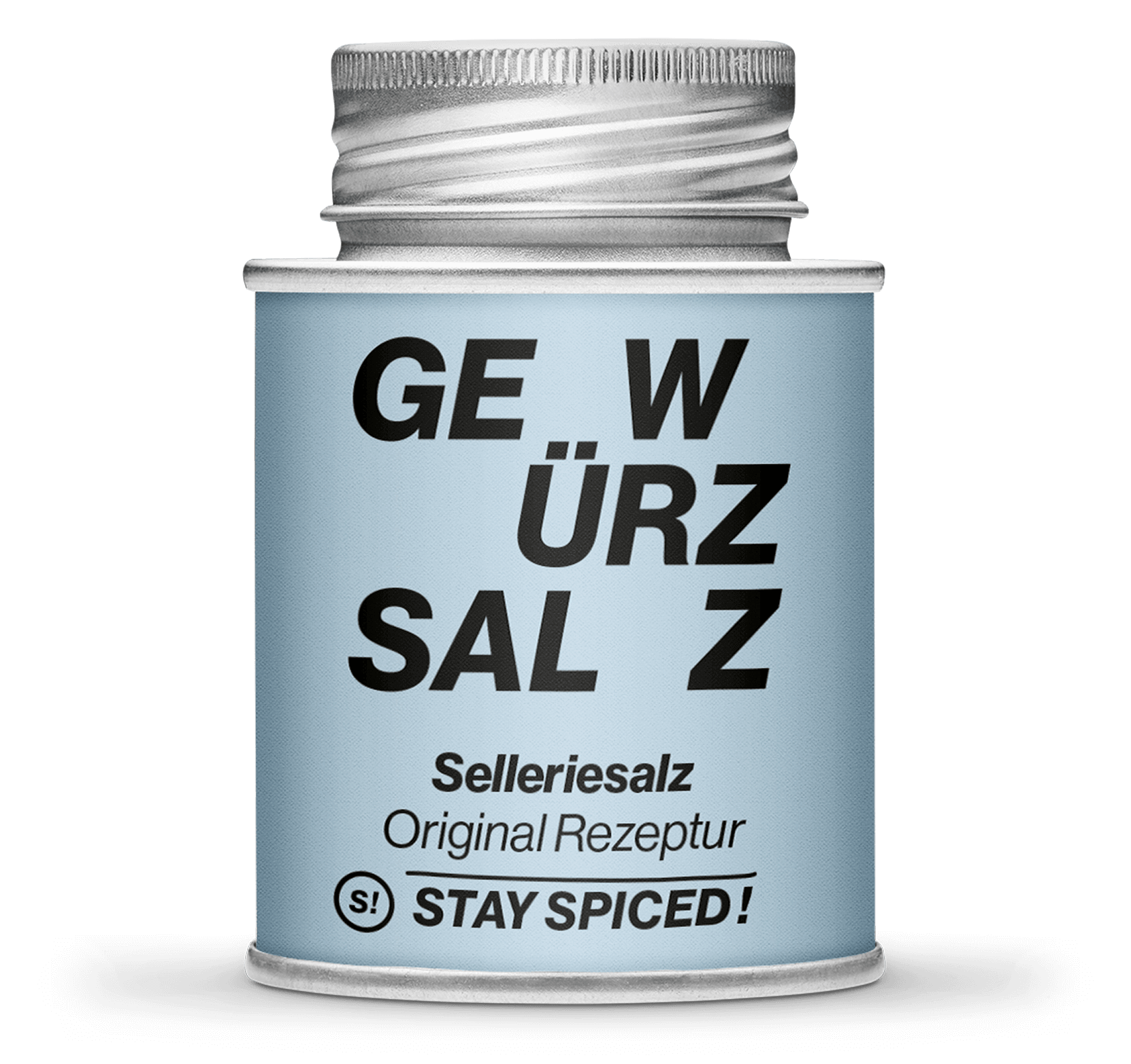 STAY SPICED ! Selleriesalz: Ein 100% natürlicher Geschmacksverstärker Purer Geschmack auf ganzer Genuss-Linie erwartet dich mit dem Selleriesalz von STAY SPICED! – ein Muss für jede Küche! Mit seiner würzigen Note ist es der optimale Geschmacks-Kick für deftige Hausmannskostgerichte wie Schweinsbraten, Suppen, Saucen und rustikales Gemüse. Aber auch Outdoor Cooking Spezialitäten wie Maiskolben vom Grill, Wedges und sogar pikanten Cocktails wie zum Beispiel Bloody Mary verleiht das Selleriesalz von STAY SPICED ! den letzten Schliff. Was in diesem natürlichen Geschmacksverstärker drinnen ist? Nichts als Speisesalz, Selleriesaat, Selleriewurzel und Sellerieblätter. Genau diese Sellerie-Power sorgt dafür, dass deine Gerichte einen wunderbar runden, herzhaften Geschmack bekommen. Probiere das Selleriesalz also auch unbedingt in Suppen, Brühen, Salaten wie dem amerikanischen Coleslaw oder auch dem italienischen Ragù bolognese aus – ein absolut perfektes Geschmacks-Match. S! Tipp: Da das Selleriesalz einen besonders intensiv-würzigen Geschmack hat, benötigst du auch wesentlich kleinere Mengen zum Salzen und Abschmecken als bei herkömmlichem Speisesalz. Und so kommst du auch besonders lange mit dem Selleriesalz von STAY SPICED ! aus.