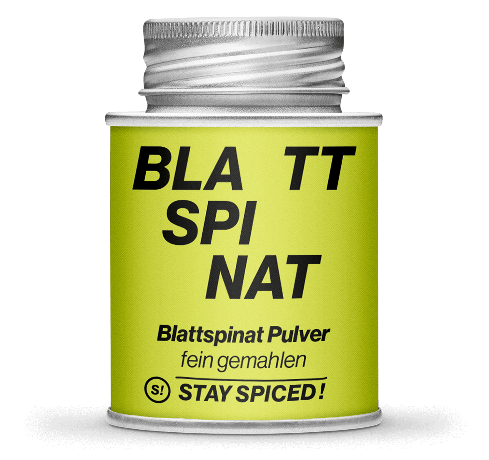 Herkunft Spinat wird, mit Ausnahme der Tropen, weltweit angebaut. Die Hauptanbaugebiete in Europa sind Italien, Frankreich und Deutschland. Wild wachsenden Spinat gibt es kaum. Allgemeines Spinat hat einen hohen Gehalt an Mineralien, Vitaminen und Eiweiß. Er ist eine ausgezeichnete Folsäurequelle. Außerdem soll Spinat sogar die Verdauung anregen. Spinat ist ein Gemüse, das in der Küche sehr beliebt, da er sehr vielseitig zu verwenden ist Verwendung Spinatpulver verwendet man hauptsächlich zum Färben von Lebensmitteln z. B. alle Pasta-Arten, Reisgerichte, grüne Suppengerichte. SPICEWORLD-Tipp Grüne Eierspeise ist auf jeder Halloween-Party der Hit!