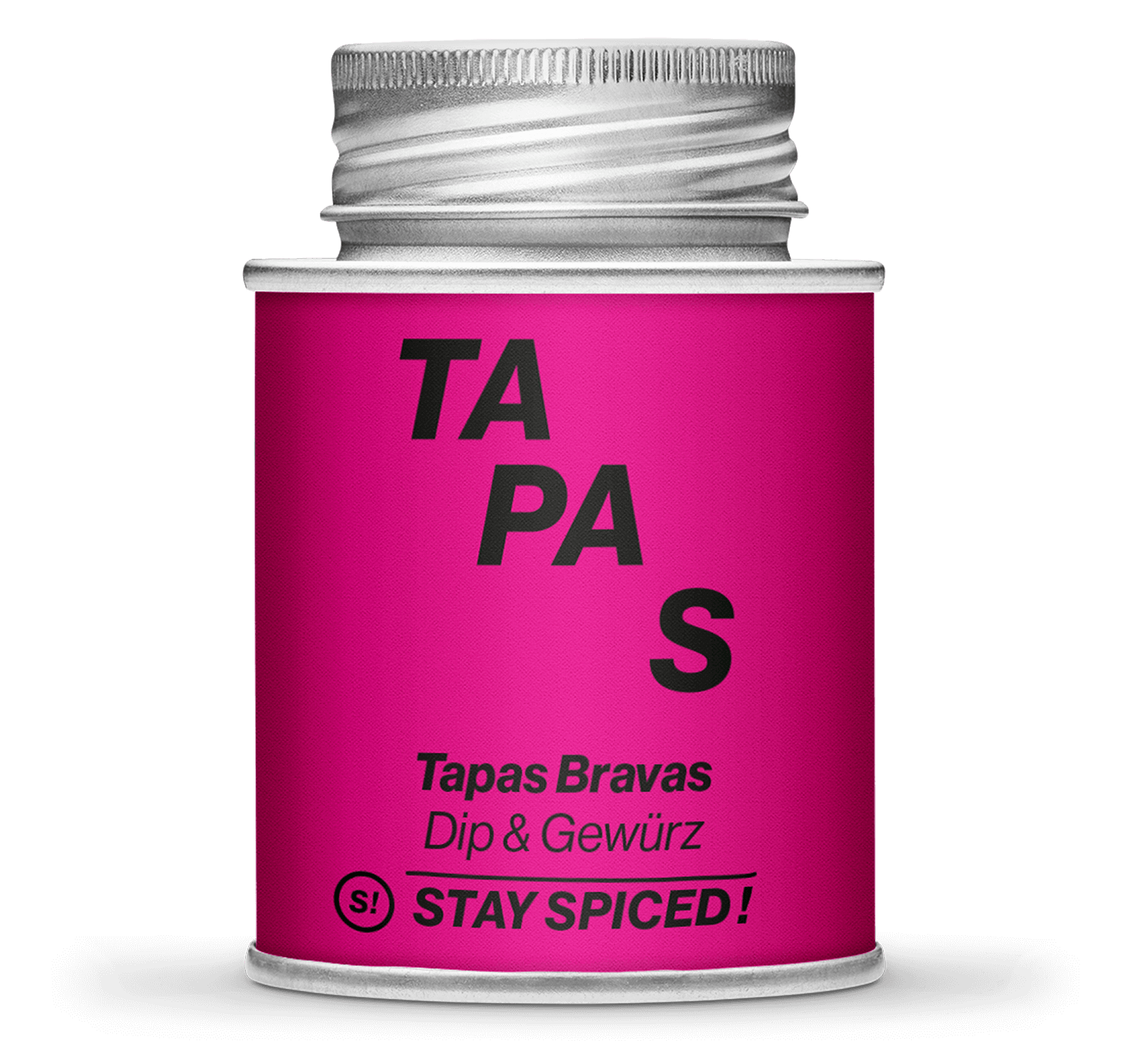 Eine Tapa ist ein kleines Appetithäppchen, das in Tapas-Bars üblicherweise zu Wein, jedoch auch zu Bier gereicht wird. Mit unserem Tapas Brava Gewürz veredeln Sie Ihre Tapas zu einem tomatigen, fruchtig, leicht scharfen Geschmackserlebnis. Original spanische Gewürzmischung.