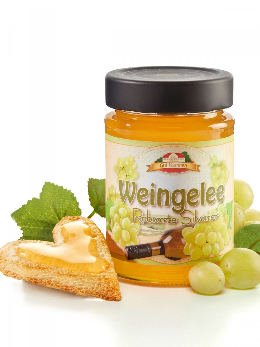 Fein, fruchtig, harmonisch Die Rebsorte Silvaner überzeugt durch ein fruchtig, harmonisches Bukett – sie ist eine der ältesten Rebsorten und einer der typischsten Frankenweine Unsere spezielle Hausrezeptur macht dieses Gelee zu einem besonderen Erlebnis zu Baguette, Brot oder auch zu Käse. Alkoholgehalt: 1,0% Vol. 220-g-Glas.