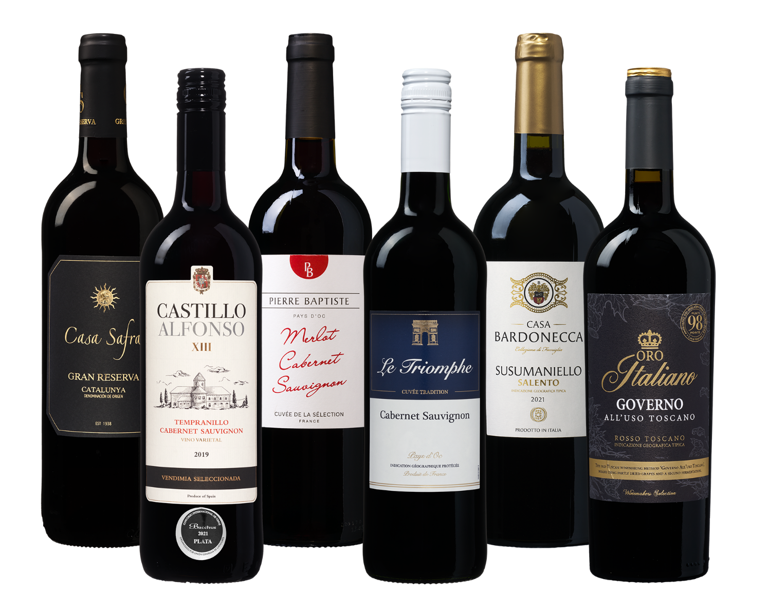Unsere Kunden haben einen guten Geschmack! Das beweist dieses Weinpaket, zusammengestellt aus den beliebtesten Rotweinen aus unserem Sortiment. Einer wie der andere echte Topweine. Dürfen wir vorstellen: die Favoriten unserer Kunden! Da wäre der prächtige Gran Reserva aus Spanien mit ganzen 24 Monaten Holzreifung. Außerdem ein Susumaniello, ein Power-Wein aus dem Hause Casa Bardonecca: betörend sinnlich und großzügig. Und nicht zuletzt unser Pierre Baptiste Merlot-Cabernet, an Fruchtigkeit kaum zu übertreffen. Das sollten Sie sich nicht entgehen lassen!