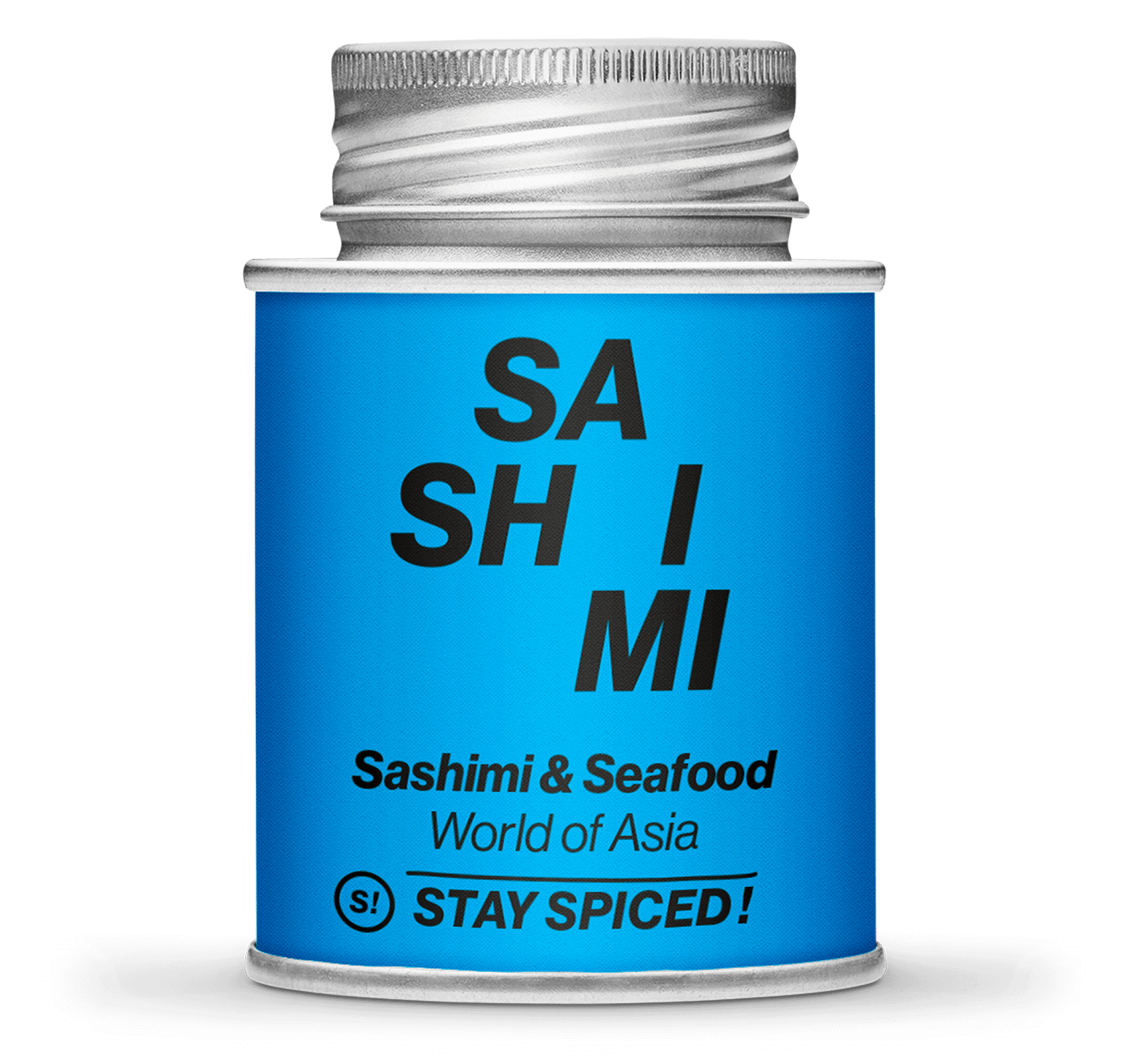 Fisch und Meeresfrüchte roh zuzubereiten ist eine absolute Spezialität der japanischen Küche. Dort wie auch in unseren Breitengraden ist die Delikatesse als „Sashimi“ bekannt – und STAY SPICED! hat dem kulinarischen Kulturgut Japans ein eigenes Gewürz in der World of Asia Reihe gewidmet: Sashimi & Seafood. Hier sind die besten Zutaten für Sashimi in einer einzigen Gewürzmischung vereint.